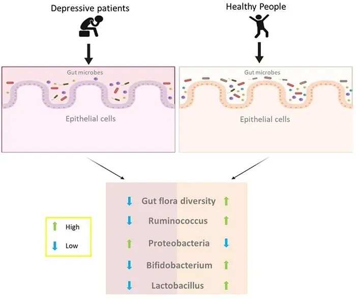 抑郁患者的肠道不一样:研究发现,抑郁症患者的肠道菌群与健康人存在显著差异。总体来说,就是有害菌(如变形菌)增多,有益菌(如双歧杆菌、乳酸杆菌)减少。肠道菌群的多样性也明显下降。
